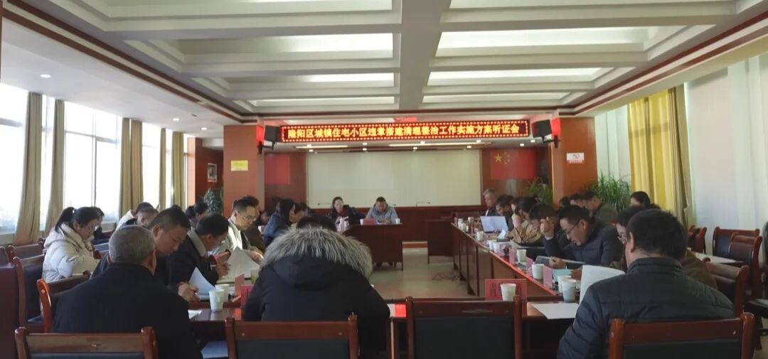 会议围绕《隆阳区城镇住宅小区违章搭建清理整治工作实施方案(草案)》起草的背景、工作目标、适用范围以及分类处置措施等内容作了说明。