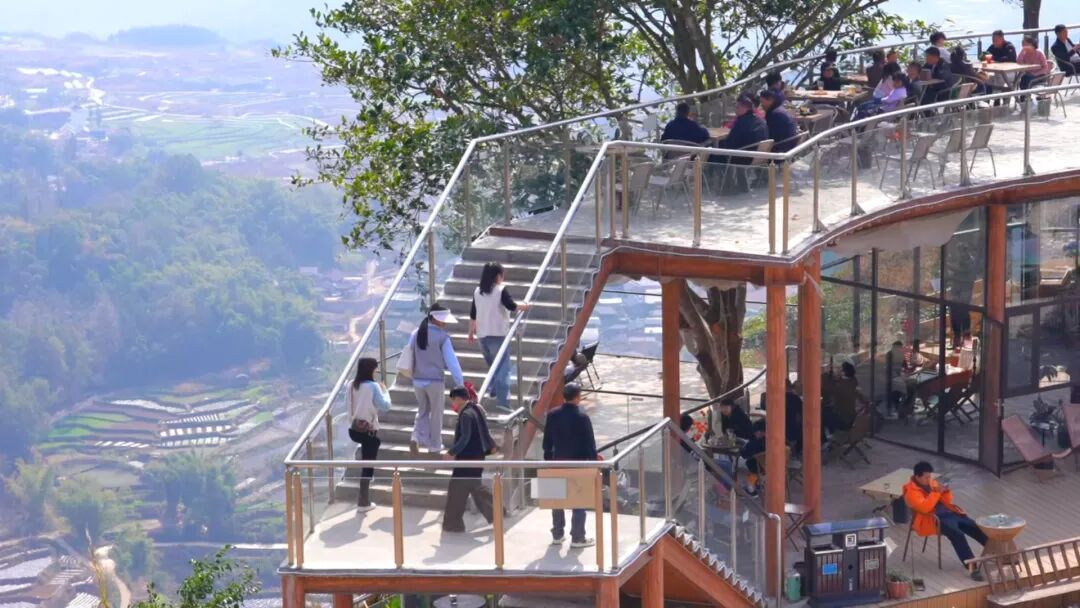如果说松山的热度在于历史的回甘,那么龙江乡的“崖边咖啡”,则代表了龙陵乡村旅游的时尚新潮。春节后,万亩梯田虽未迎来春耕注水,但云海景观依然壮美如画。记者在这座悬崖观景台上的咖啡店看到,年轻人三三两两倚栏而坐,手捧热咖啡,静看龙江的独特美景。