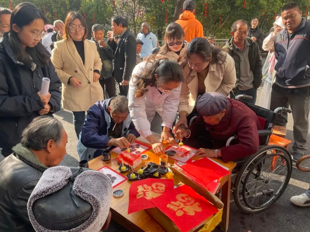 参观结束后,大家来到游戏互动区。这里张灯结彩,元宵氛围正浓,护理人员与老人两两结对,有的在灯谜前凝神思索,猜中时相视一笑,智慧的火花点亮了彼此的眼眸;有的围坐桌旁,一起印窗花,指尖翻飞间,一幅幅精美的图案跃然纸上,传递着传统文化的温情;不远处的康复活动区,老人们正在医护人员的陪伴下进行趣味康复训练,每一次小小的进步都伴随着鼓励的掌声。当然,最热闹的还要数套圈和夹弹珠游戏,套圈时的欢呼、夹弹珠时的屏息、成功时的击掌,这些趣味游戏把老少的心紧紧连在一起。现场欢声笑语连成一片,像一串跳动的音符,在院内久久回荡。