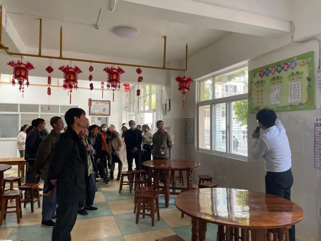 参观人员在工作人员的引导下,分组走进老人生活区、医疗护理站、康复训练室和食堂等重点区域。在生活区,护理员现场演示了护理型床铺的升降操作并讲解了每日护理流程;在康复训练室,医护人员展示了针对半失能老人的日常训练项目,还邀请参观者亲身体验简易康复器材;在食堂餐厅,工作人员详细介绍了食材采购溯源机制、48小时留样制度及每日营养食谱的制定原则。其中一位老人的家属参观后感叹:“食堂比自家厨房还干净,看到父母每天能够吃到健康营养的食物,心里踏实多了。”