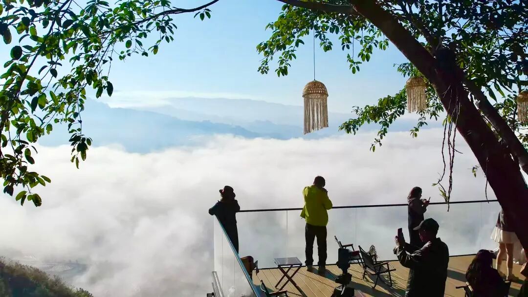 在龙江最火的崖边咖啡店内,前来打卡的游客络绎不绝。一边看万亩茶园与翻涌云海交织的绝美盛景,一边啜饮醇厚香浓的高海拔精品咖啡,已成为龙陵田园旅游的“标配体验”,更成为游客争相分享的社交圈“爆款素材”。
