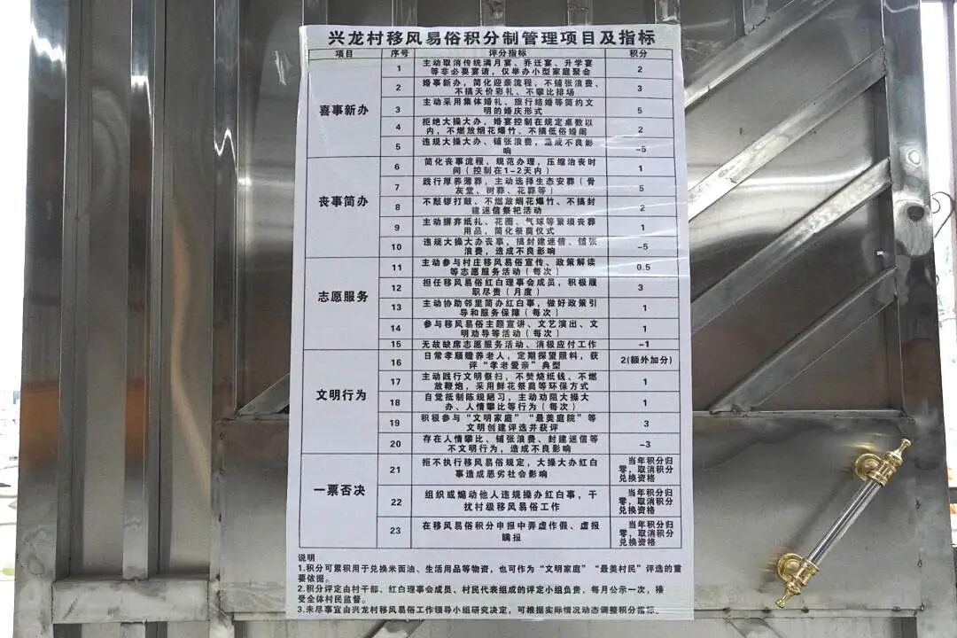 一条条具体的规则,不仅给村民划清了文明的“标尺”,更让大家知道了“怎么做能加分,怎么做是新风”。