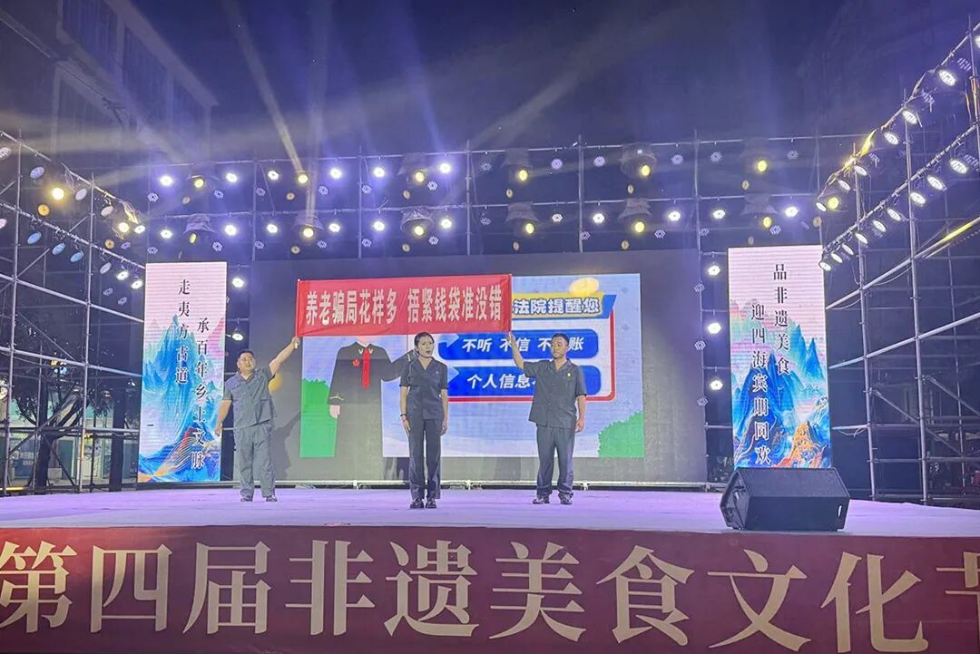 4月18日,昌宁县人民法院干警精心编排的反诈普法节目亮相更戛乡第四届非遗美食文化节法治主题晚会,创新采用歌曲改编+顺口溜的文艺形式,将枯燥的法治知识融入生动鲜活的表演,让普法宣传真正走进基层、贴近民心、入脑入心。