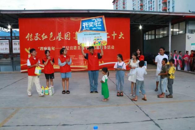 为认真学习习近平总书记在省部级主要领导干部专题研讨班上的重要讲话精神,8月3日晚上,中共施甸县委宣传部、甸阳镇党委在甸阳镇幸福社区组织开展了“传承红色基因喜迎党的二十大”——理论宣讲进社区活动,用小故事讲清大道理,让党的创新理论“飞入寻常百姓家”,鼓励社区群众进一步弘扬奉献、友爱、互助、进步的志愿服务精神。