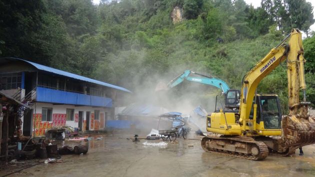 重拳出击拆除水源地违法违规建筑。为贯彻落实《云南省河长制办公室关于切实加强河湖“清四乱”行动工作的通知》文件要求,严厉打击水库水源保护范围内存在的“四乱”等问题,由杨柳乡党委政府牵头,区水务局、市生态环境局隆阳分局、区交通运输局、区市场监督管理局、区城市综合行政执法局等部门联合,重拳出击,在大、小海坝水源保护范围内开展河湖“清四乱”专项行动,拆除大小海坝鱼庄等违法建筑物。此次行动,联合6大部门,共抽调185人,投入挖掘机两台、装载机两台、废弃物清运车3辆、拖拉机5辆、出动行政执法车辆40余次。共依法拆除违法违规建筑物10余间,面积600多平方米。通过此次行动有效清理了水库管理范围内乱建、乱占问题,提升了各部门联合执法的凝聚力、战斗力,为隆阳区河湖“清四乱”专项行动起到典型示范作用。
