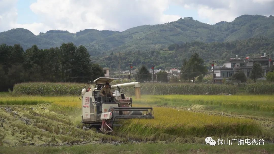 秋天的田野里,到处都是忙碌的身影,一台台小型收割机在稻田里来回作业,割稻、脱粒、装袋一气呵成。田园镇勐廷社区村民马芬今年种了1.4亩水稻,请了一台收割机来帮助收粮,仅仅40分钟就完成了收割,省时省工又省力。