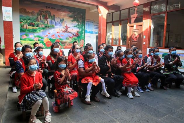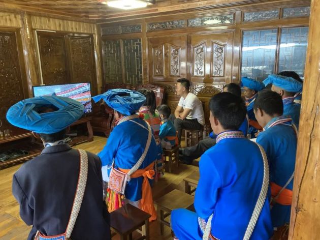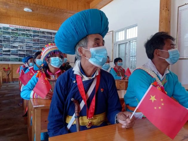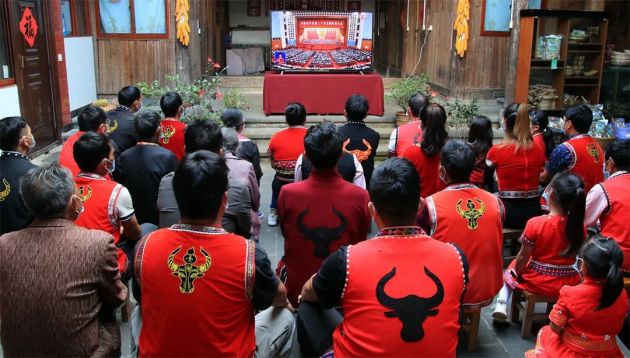 一大早,腾冲市清水镇司莫拉佤族村里就一派欢乐祥和的气氛,李发顺家已经有不少村民身着节日盛装早早地守候在电视机前,收看党的二十大开幕盛况。
