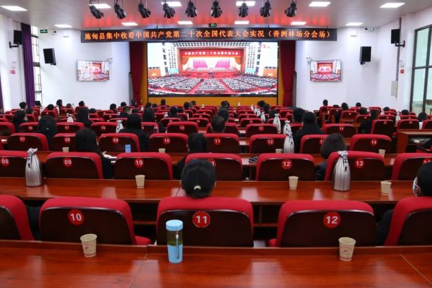 施甸县委常委、县人大常委会、县政府、县政协领导班子成员、县法院院长、县检察院检察长,县公安局政委、县级国家机关各委办局、各人民团体、县属事业单位负责人在施甸县城主会场集中收听收看中国共产党第二十次全国代表大会开幕实况。