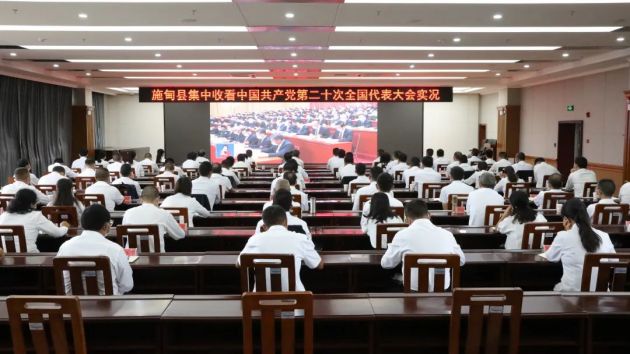 施甸县干部群众收听收看中国共产党第二十次全国代表大会开幕实况