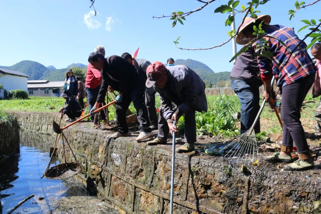 活动现场,大家分工合作,井然有序。虽然任务繁重,但大家干劲十足,经过一上午的努力,水渠被清理得干干净净。