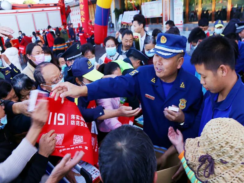 上午9时,市消防救援大队主官在活动上致辞,明确了活动内容,提出了工作要求,并宣布仪式启动。仪式启动后,参与宣传的单位部门一同观看了火灾警示教育片和消防志愿团队表演的消防安全手语操。随后,各参与部门单位组织在三桥广场开展了以“抓消防安全 保高质量发展”为主题的联合安全宣传。宣传活动的内容包括:消防安全知识宣讲、消防车辆器材装备展示、播放火灾警示片和腾冲市2022年消防公益广告、发放各类消防宣传资料、解答群众咨询。各参与宣传的部门单位紧紧围绕活动主题,引导现场群众参与、支持、融入到消防工作中来,使全民消防理念家喻户晓、深入人心,进一步夯实社会面火灾防控能力。