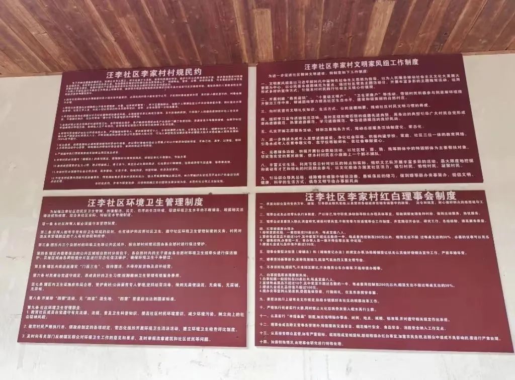 汪李社区建立了挂村干部、社区党支部书记负责,社区“两委”成员、驻村工作队、综合性群众组织、公益性岗位保洁员“分片包组”的网格化管理体系,发动包片区域在家村民常态化保洁公共区域,并负责常年整户在外务工家庭的门前、巷道“包干净”。同时,贯彻落实督查机制,由村务监督委员会牵头,社区“两委”和驻村工作队配合,组建专门督导队伍,及时收集、分析、整理村民反映的问题,结合社区实际,建立完善《村规民约》《群众自治组织制度》。此外,探索实施“红黑榜”管理机制,结合《荷花镇农村人居环境“红黑榜”情况通报》,制定《汪李社区村庄环境卫生整治工作激励方案》,计次对全年获得“红榜”的自然村进行奖励,极大激发了群众的参与热情,助力党建引领农村人居环境整治提升工作逐步实现规范化、制度化。