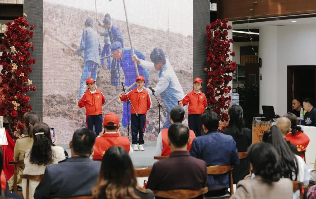 在新时代文明实践中心图书馆一楼,雷锋精神及社会主义核心价值观主题宣讲志愿服务活动“家国梦、志愿红、赤子心,我身边的雷锋故事百姓大讲堂 ”正在进行,“小马桩”宣讲团的志愿者正在讲述《杨善洲爱国故事》。