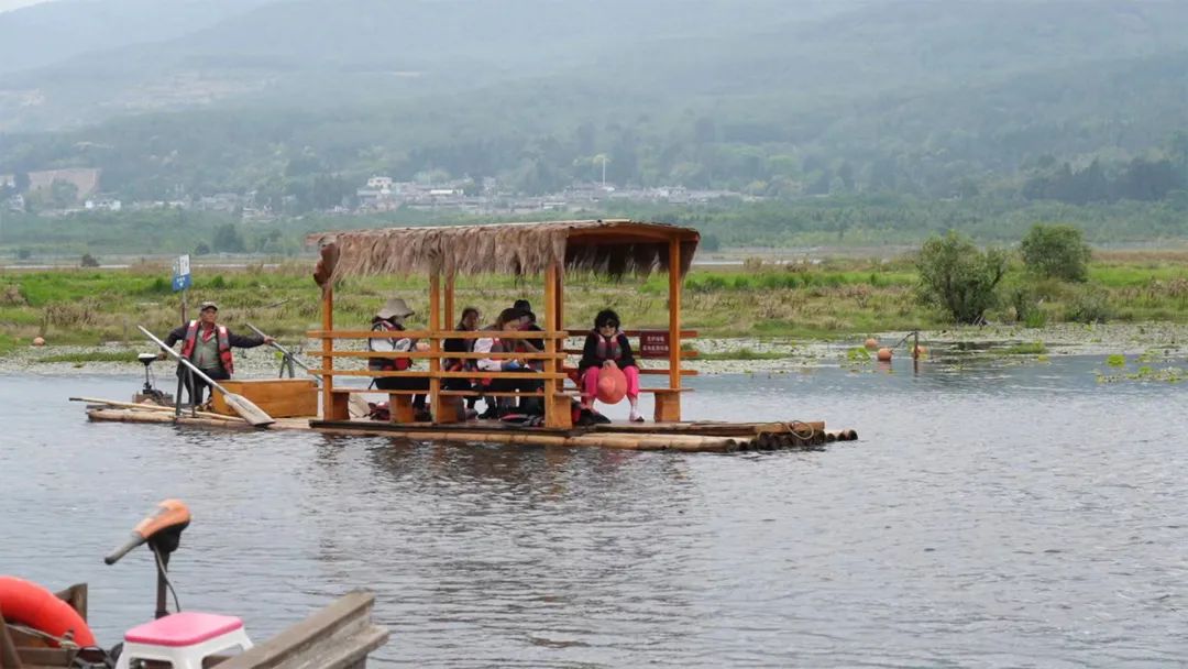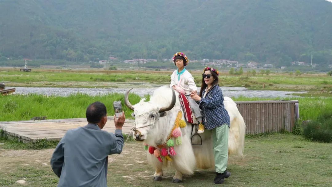 5月2日,“五一”小长假已经接近尾声,到北海湿地游玩的游客仍然兴致不减,在雨中观赏湿地风光,打卡拍照,或驻足品尝腾冲美食,或泛舟湿地观赏湿地美景。
