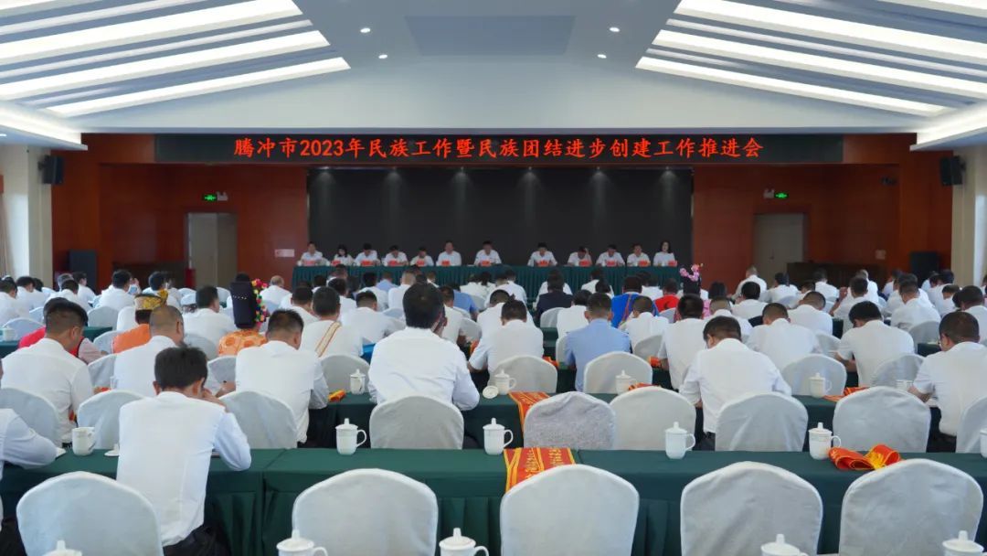 5月23日,腾冲市相继召开2023年民族工作暨民族团结进步创建工作推进会及第二次民族团结进步表彰大会。