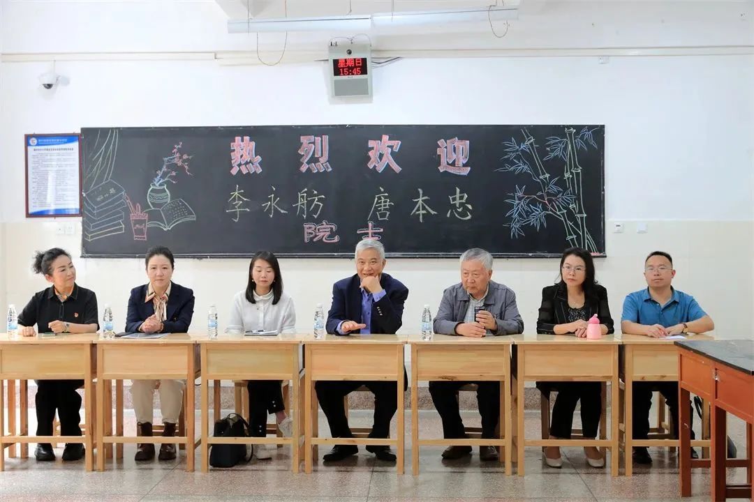 活动中,院士们与学生代表进行了一场令人兴奋的面对面交流。“李院士、唐院士,我马上就要接触化学学科了,要怎样才能培养对它的兴趣呢?”“请问是什么让您们走上化学研究的道路?”“请问化学科目的就业方向是什么?”院士们与学生亲切交流,答疑解惑,分享了自己多年来在科学探索之路上所遇到的挑战、成功和经验,给学生带来了肯定、鼓励和启发。