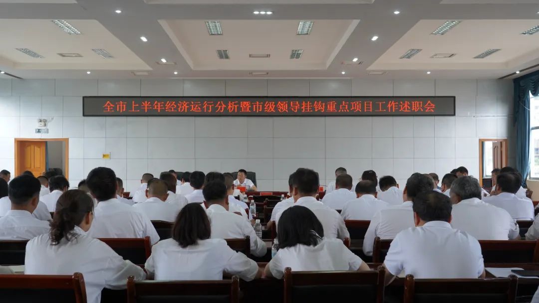 市统计局通报了全市上半年各项经济运行情况;市发改局对三季度GDP目标任务和投资计划作安排;财政局、住建局、工信局围绕“上半年经济运行情况、分析困难问题,就实现全年目标三季度如何努力”作现场发言,卫健局、城投公司、新华乡围绕如何完成全年固定资产投资目标任务作现场发言,市商务局围绕“四上”企业培育纳规工作现场发言。景浩宇、余朝蕊、彭蕊、李映华四位市领导围绕挂钩重点项目推进情况作述职发言。