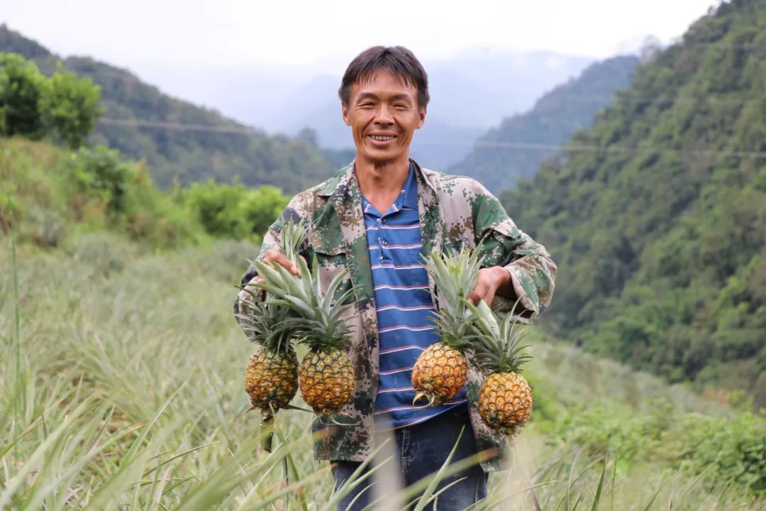 王明君所种的这些地块,是和龙山镇横山村的老百姓以每亩500元的价格流转过来的。“我们流转出去的土地都在江边,不仅坡陡,还零零碎碎的,平常管理起来费工费时,租出去给他们栽种菠萝,我们可以直接收地租。”村民赵德海说。菠萝一次栽种,可以采摘三茬。据了解,目前是第一茬,今年的菠萝挂果情况和品质都比较好,预计产量能达2000多斤,产值能达12万元。在有效促进产业发展的同时,还能提供给周边村民务工岗位。从栽种、管理到采收,目前已经带动当地许多群众增收。“我和妻子于2021年帮助老板照管基地,每个月两个人能有6000元左右的收入,娃娃一个读高中,一个读五年级,远处去不了,基地就在家边,还是很方便的。”村民王广其对目前的状态表示很满意。栽种菠萝,在龙陵尚属于“新鲜”产业。王明君表示,计划来年扩大种植面积,让一个个菠萝成为助力乡村振兴的“甜蜜”希望。