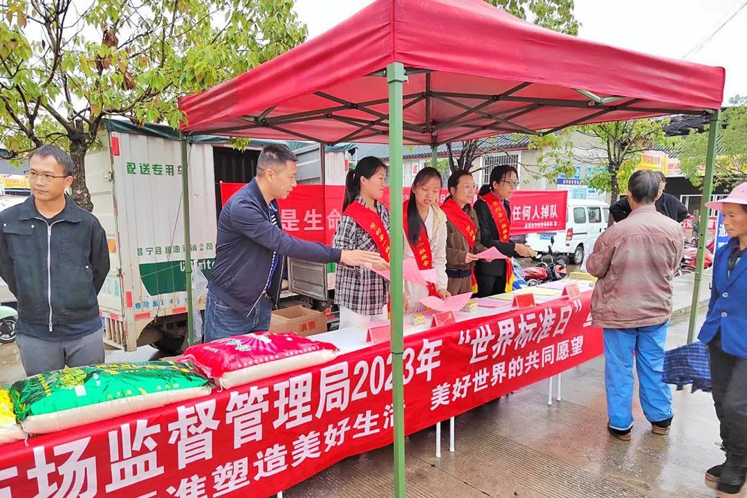 10月16日是第43个世界粮食日,昌宁县发展和改革局(县粮食和物资储备局)、市场监管局、农业农村局、粮油购销有限公司等部门和企业联合开展了2023年世界粮食日和全国粮食安全宣传周系列宣传活动,进一步提升群众粮食安全意识,推动爱粮节粮、节粮减损、健康消费成为社会新风尚。