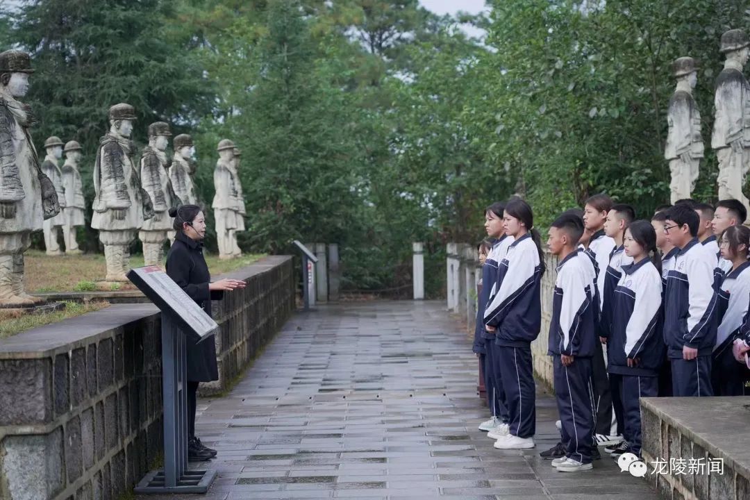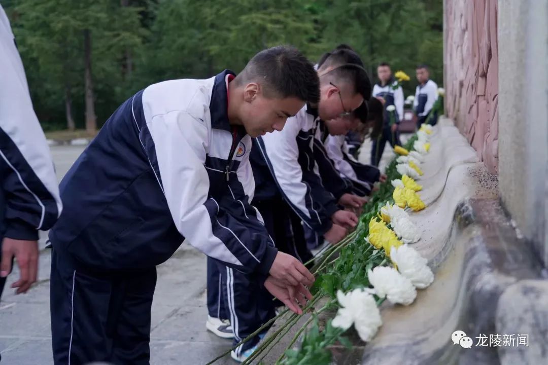 在松山抗战遗址的中国远征军雕塑群和中国远征军第八军第103师抗战阵亡将士公墓前,同学们肃穆而立,集体对英烈三鞠躬,敬献鲜花,追忆他们的丰功伟绩,表达无限的哀思和崇高的敬意。