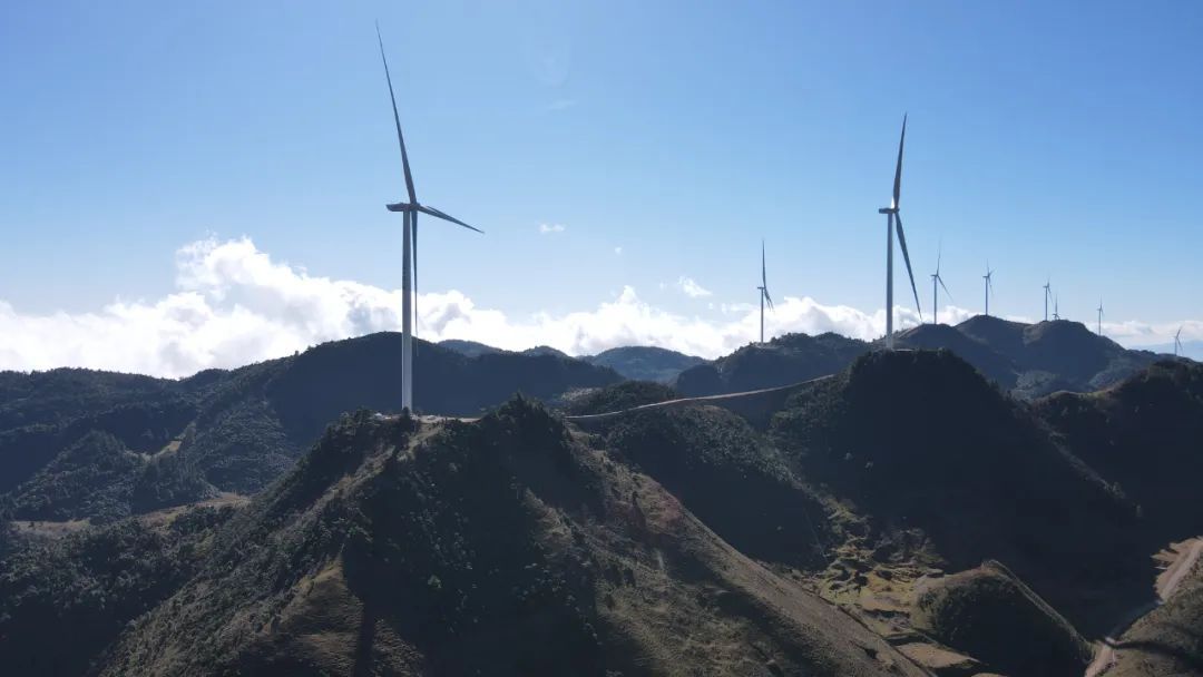“施甸县风吹山风电场项目于2023年10月11日开工建设,共安装12台大容量风力发电机组,总装机容量77兆瓦,该项目于2023年12月22日升压站反送电一次成功,12月31日,12台风电机组全容量并网发电。所发电能汇集到一期四大山风电场升压站后经1回110千伏四石线接入保山电网110千伏石鼓坡变电站。”郭成海说。