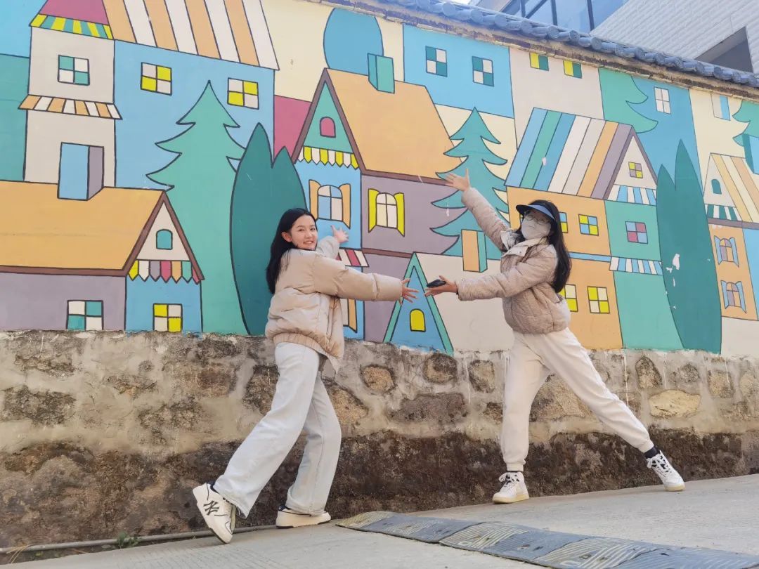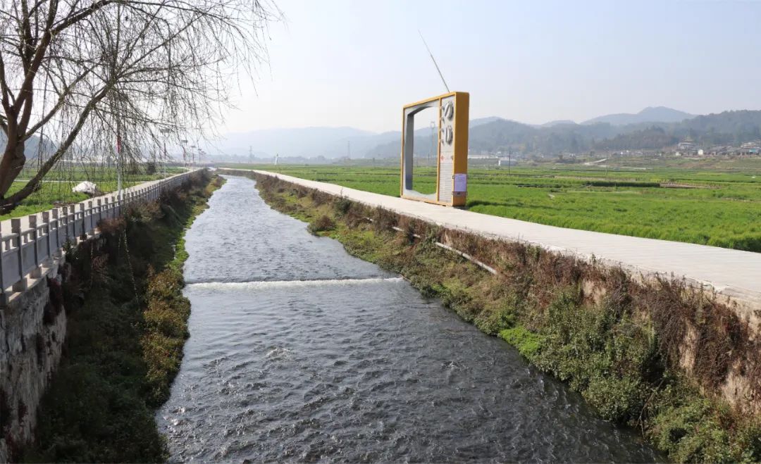 冬日暖阳下,走进省级绿美乡镇——镇安镇,潺潺流淌的玉带河穿坝而过,碧绿的田野上不时有白鹭翩飞停歇,白墙青瓦的民居依山坐落,巨型“山茶牌电视机”“世纪之门”“振兴一号专车”“梵高的麦田”等艺术创作分布在田野之间。行走在位于坝尾的镇北社区,干净整洁的水泥道直通每家每户,以党建元素、乡风文明、农耕文化、山水风光等为内容的墙画和寨子融为一体。