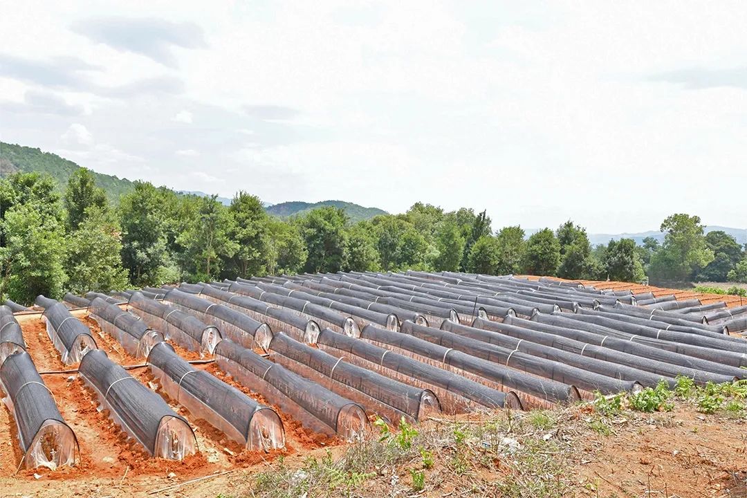 在云南生机湾农业有限公司苗圃基地,远远望去一个个单体育苗大棚像透明的“水晶宫”矗立在山洼里,棚内工人们正在有条不紊地进行培土、育苗、浇水、覆膜等工作,一片热火朝天的繁忙景象。