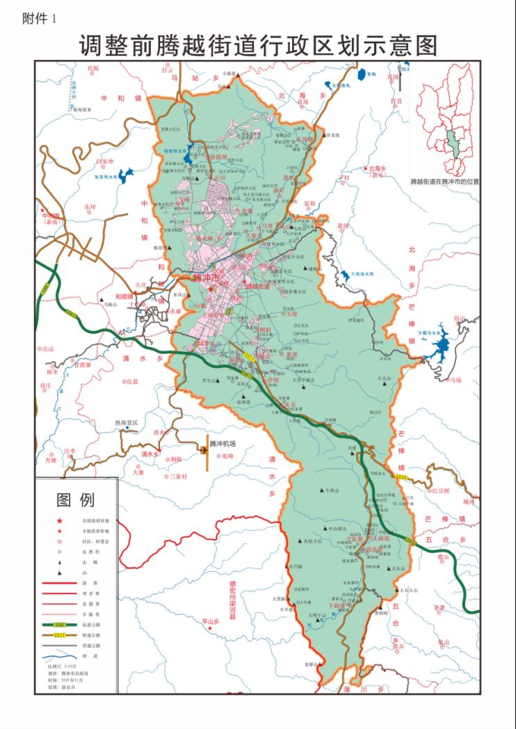 一、同意调整腾冲市腾越街道现行政区域,以大盈江中心线为界一分为二析置分设腾越街道和西源街道;大盈江中心线以北新设立西源街道,以南沿袭保留腾越街道。