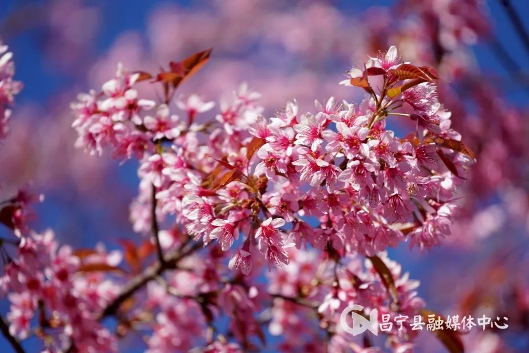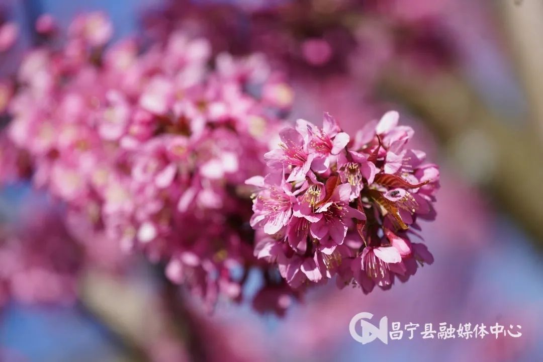 “十日樱花作意开,绕花岂惜日千回。”冬至前后,昌宁县境内的数万株樱花竞相开放,粉色的樱花在绿色茶园的映衬下分外艳丽,绘成了一幅幅樱美茶香的唯美画卷。