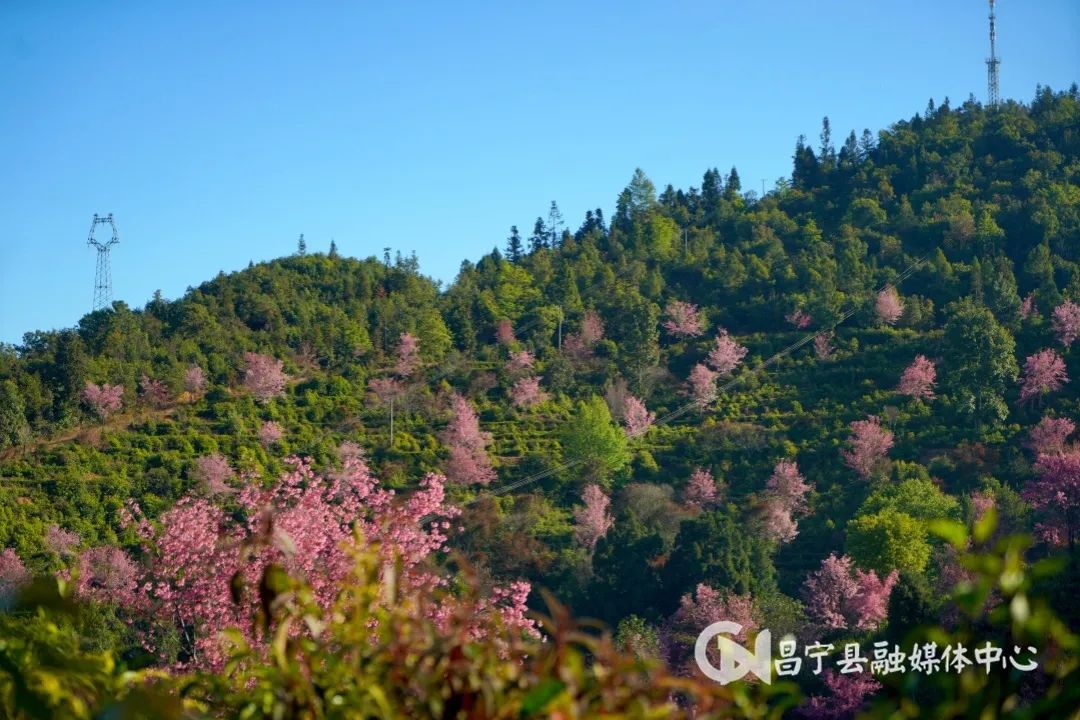 在鸡蛋山樱花谷,当第一缕温暖的阳光穿透山间的薄雾,柔情地抚摸着昌宁大地的群山,便悄悄拉开了冬日序幕里最浪漫的一页。樱花在高海拔雾气和冬日暖阳的滋养下,显得格外娇艳,从远处眺望,樱花如云似霞,与碧绿如染的茶山交织在一起,如同点缀于翠绿宝盖之上的粉红珍珠,阳光透过花木间,光影斑驳、明暗交错,仿佛置身于油画之中。“茶香萦绕,樱花开了。点点粉白,朵朵浪漫,冬樱花用最明艳的色彩,让昌宁的山峦静谧而烂漫。樱花的花语是一期一会,趁着阳光正好,带上家人朋友,一起到昌宁赏樱吧!”昌宁县融媒体中心记者廖奕涵在樱花谷向各地游客推介昌宁樱花热门打卡地。