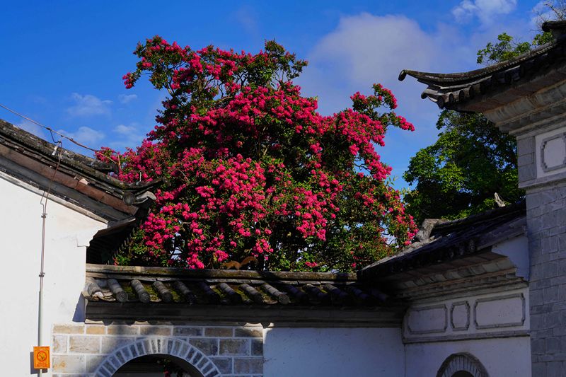 当古建筑遇上紫薇,既古朴幽雅,亦壮丽妖娆,还笼着一种通灵的仙气,惊艳了自然与建筑艺术融汇流淌的岁月,亦惊艳了腾越历史文化长长的时光。