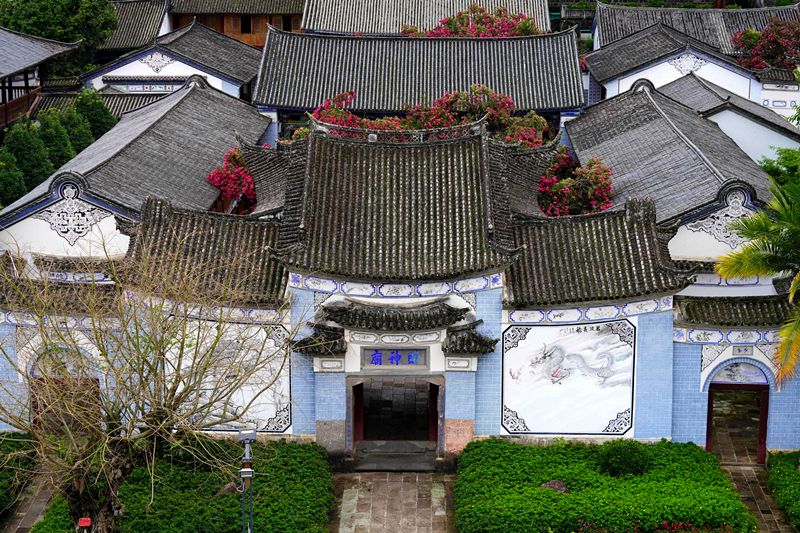 腾冲一中的紫薇苑古建筑群,为国家级重点文物保护单位。古名“财神庙”,始建于明,后被焚,今存者乃清光绪二十四年张松林、黄炳堃合绅商重建。主体建筑分布在同一中轴线上,照壁、大门、戏楼、过厅、大殿、两厢珠联一体,分两进各自构成四合院式的建筑单元。薪火相传的紫薇花,在神灵护佑的天地里畅快呼吸,粲然嫣然,吞吐大荒。