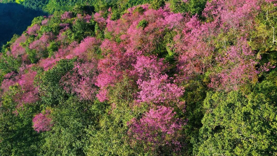 时下,北方飘雪南方却“飞花”,云南保山施甸善洲林场东麓芭蕉林村的十万余株野樱花如期绽放,宛若织锦,鸟鸣花香中也迎来了最佳观赏期。