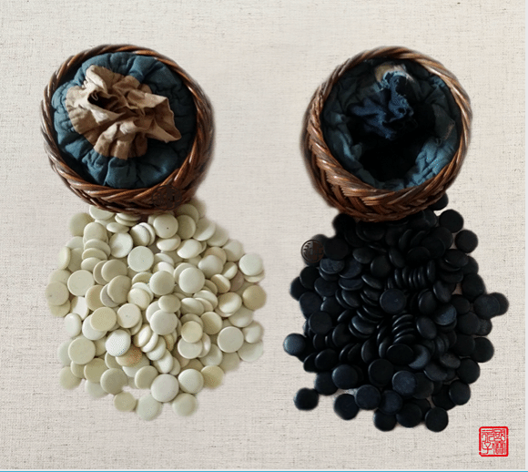 清道光二十二年(1842年),《嘉庆重修一统志》记载:“永昌之棋,甲于天下。其牙色、深黑者最坚,次取绿者稍脆,又蜡色、杂色及黑白俱有花者,其下也。”它分层次地介绍了永子的质量标准。我们看到,由于古人制作永子是纯粹采用手工制作,每一炉烧制的永子可能都会有质量上的差异。在清代,人们已经总结出通过永子的色泽和外观鉴定其质量。
