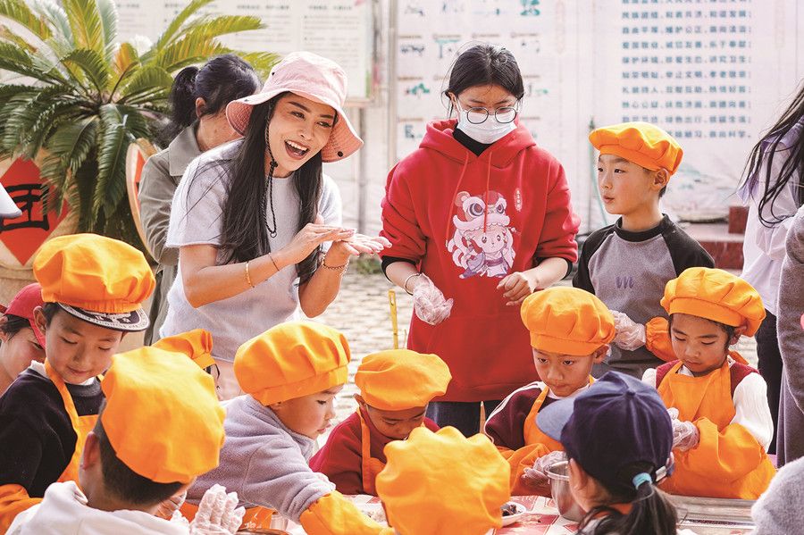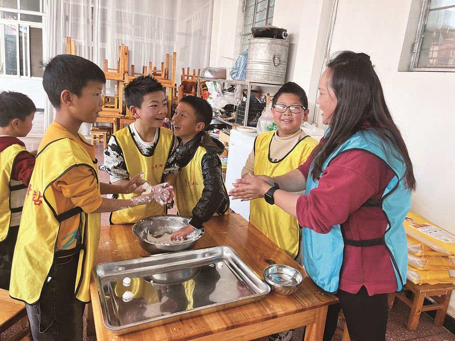 在湾甸傣族乡,来自多所高校的返乡大学生志愿者与孩子们齐聚一堂,共同包汤圆、话传统,用一碗碗热气腾腾的汤圆传递节日的温暖与喜悦。