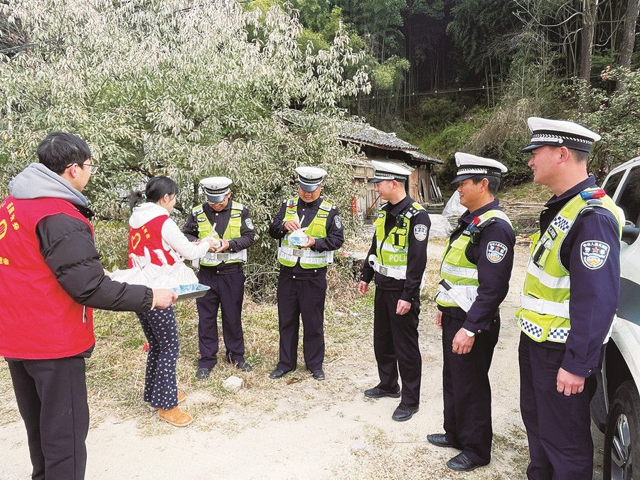 猴桥镇志愿者为交警送汤圆。