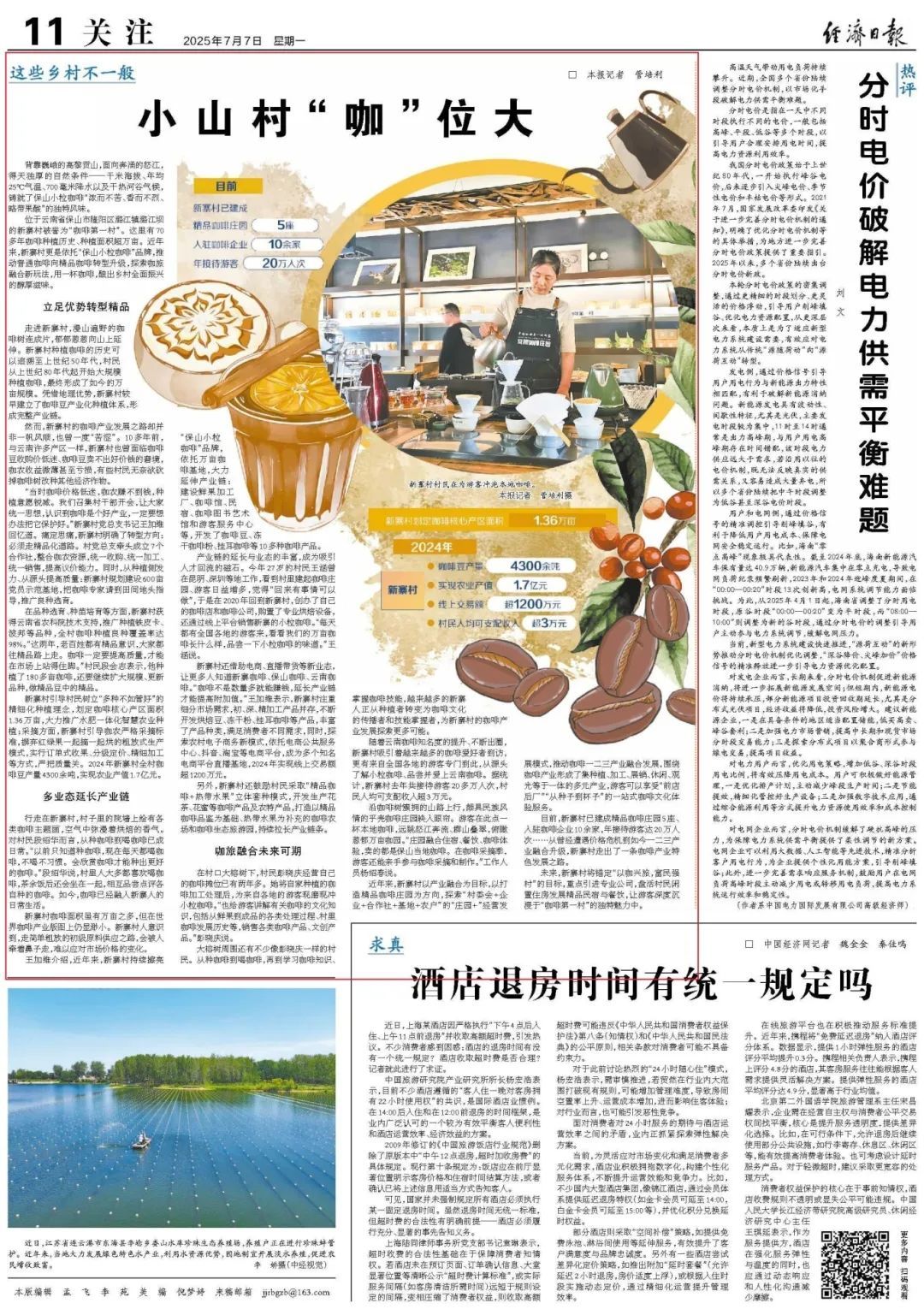 位于云南省保山市隆阳区潞江镇潞江坝的新寨村被誉为“咖啡第一村”。这里有70多年咖啡种植历史、种植面积超万亩。近年来,新寨村更是依托“保山小粒咖啡”品牌,推动普通咖啡向精品咖啡转型升级,探索咖旅融合新玩法,用一杯咖啡,酿出乡村全面振兴的醇厚滋味。