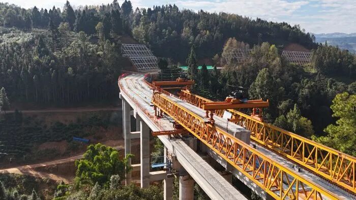 为确保工期节点顺利达成,项目部在现有1号预制梁场基础上加大投入、科学选址,增设2号预制梁场,显著提升预制梁板产能;针对夏季高温难题,采用“错峰浇筑+洒水降温”组合措施,保障预制梁板质量稳定;聚焦T梁运输、起吊、架设等高风险环节,常态化开展安全隐患排查整治,实现施工全过程“零安全事故”。同时,通过增配架桥机、运梁车、汽车吊等专业设备,构建“预制-运输-架设”闭环高效作业链,确保T梁按期精准就位。