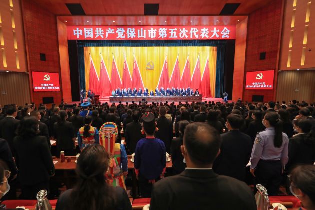 上午10时,中国共产党保山市第五次代表大会开幕。全体起立,雄壮的国歌响彻会堂。