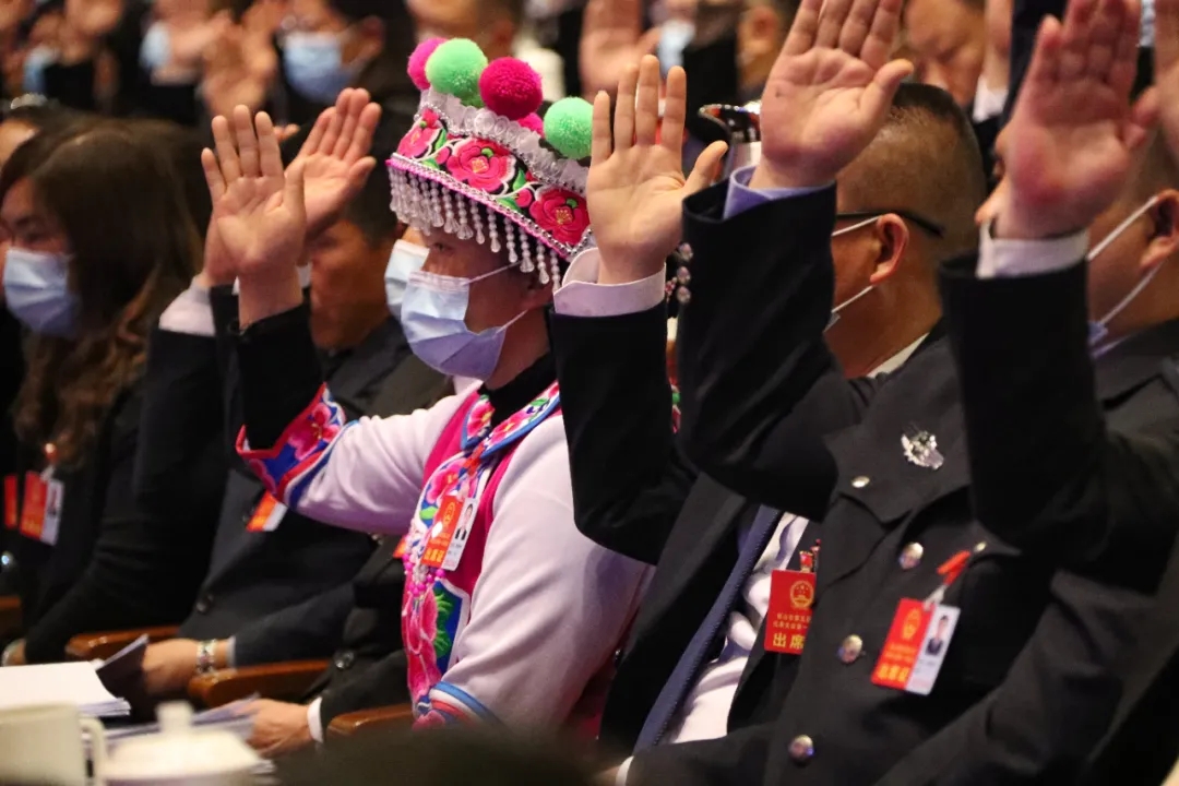 出席“两会”的全体代表、委员和人代会列席人员参加会议。(2022保山两会新媒体宣传报道组)