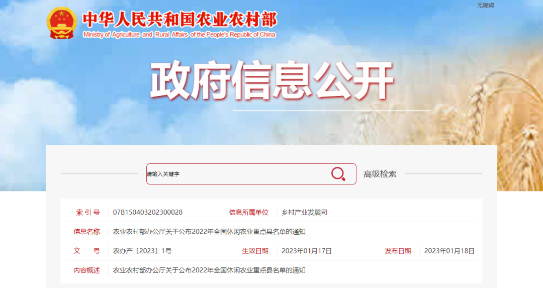 为贯彻落实中央一号文件和《农业农村部关于拓展农业多种功能 促进乡村产业高质量发展的指导意见》精神,实施乡村休闲旅游提升计划,开发农业多种功能、挖掘乡村多元价值,推动资源适度集聚,我部组织开展了2022年全国休闲农业重点县申报和监测工作。经县级申报、省级遴选、专家评审和网上公示等程序,认定北京市门头沟区等60个县(市、区)为2022年全国休闲农业重点县,现予以公布。