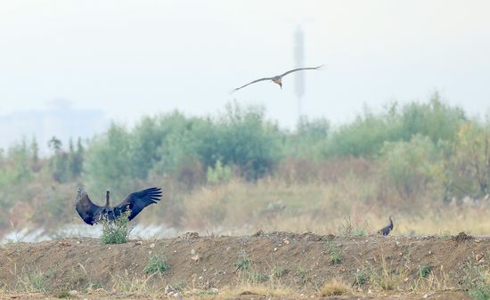天气渐寒,候鸟南迁。近日,一群黑鹳在云南保山城区附近的农田里悠闲散步觅食。经观测,截至目前黑鹳种群数量多达9只。