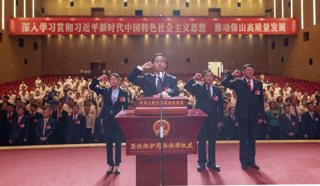 杨军向新当选人员颁发当选证书,会议组织新当选人员向宪法宣誓。