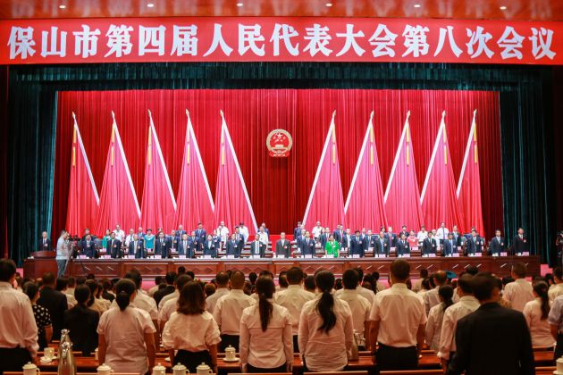 保山市第四届人民代表大会第八次会议在中华人民共和国国歌声中闭幕!