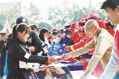 11月9日是第32个全国消防日。当天,我市2023年“119”消防宣传月活动启动仪式在吾悦广场举行。