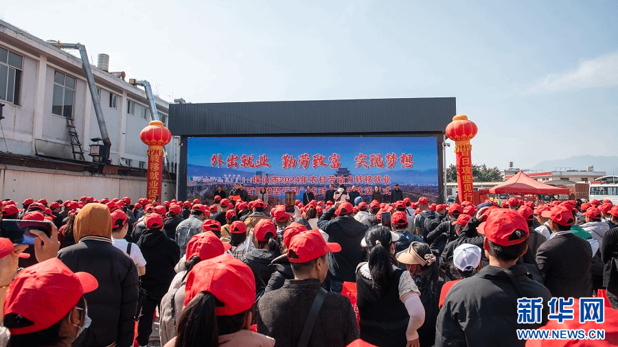 2月15日,保山市举行2024年农村劳动力转移就业“百日攻坚行动”点对点输出欢送仪式,集中欢送450名外出就业群众赴上海、江苏、广东、福建等地就业。
