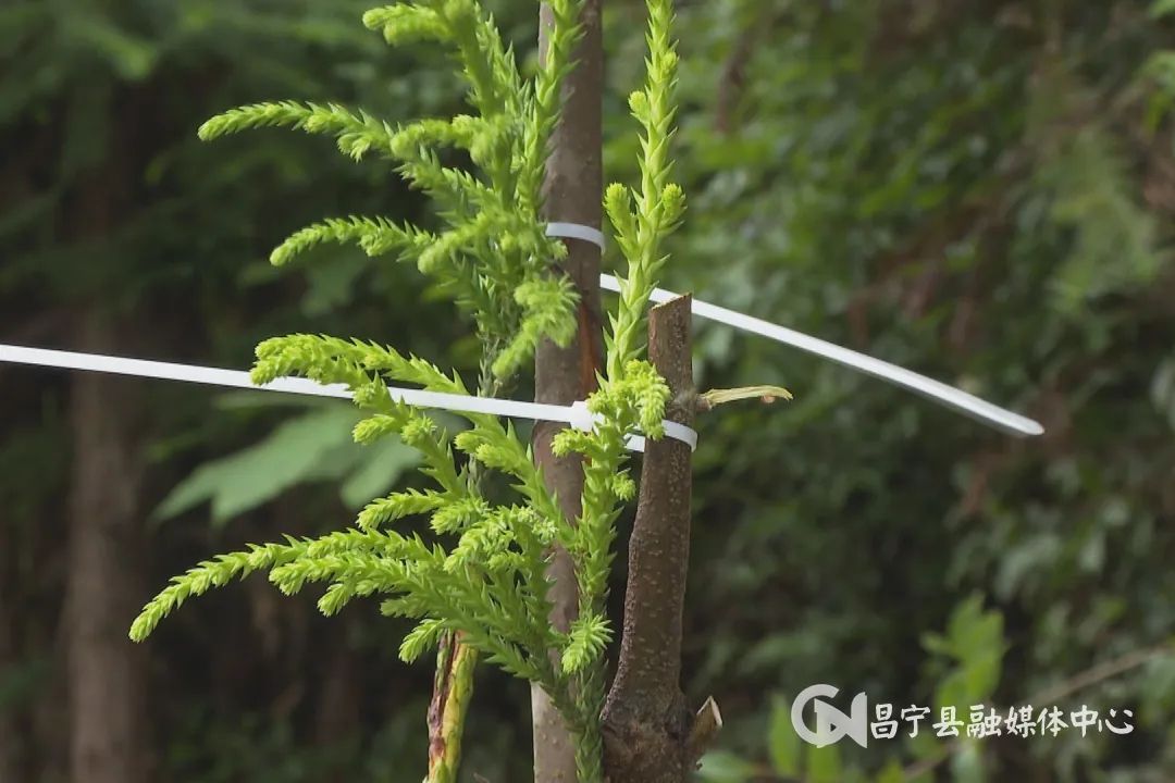 秃杉母树树体高大、采种难、结实晚、结实量少、种子遗传品质良莠不齐等问题,让秃杉人工林产业可持续发展陷入瓶颈。昌宁县在西山林区已建设具有国内先进水平的秃杉无性系种子园300亩,并获得无性繁殖技术新突破,秃杉实生苗栽植的植株要25年以上才能开花结籽,而经过嫁接无性系繁殖的植株8年以上就可以试花结籽。