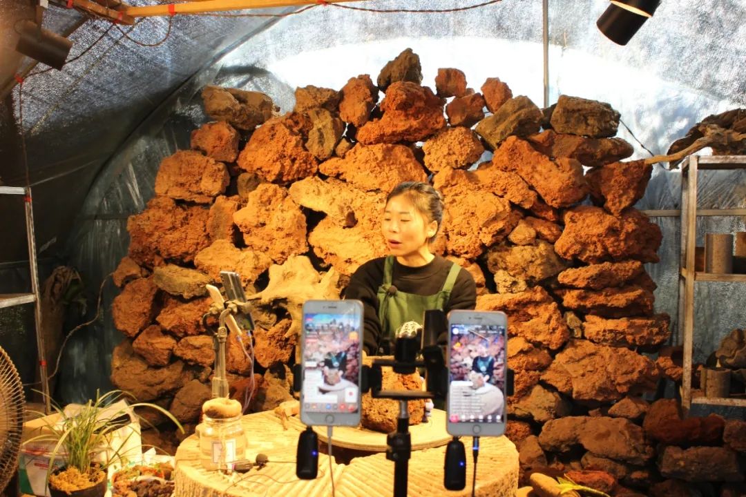 荷花镇立茵堂种植专业合作社主播在直播带货。