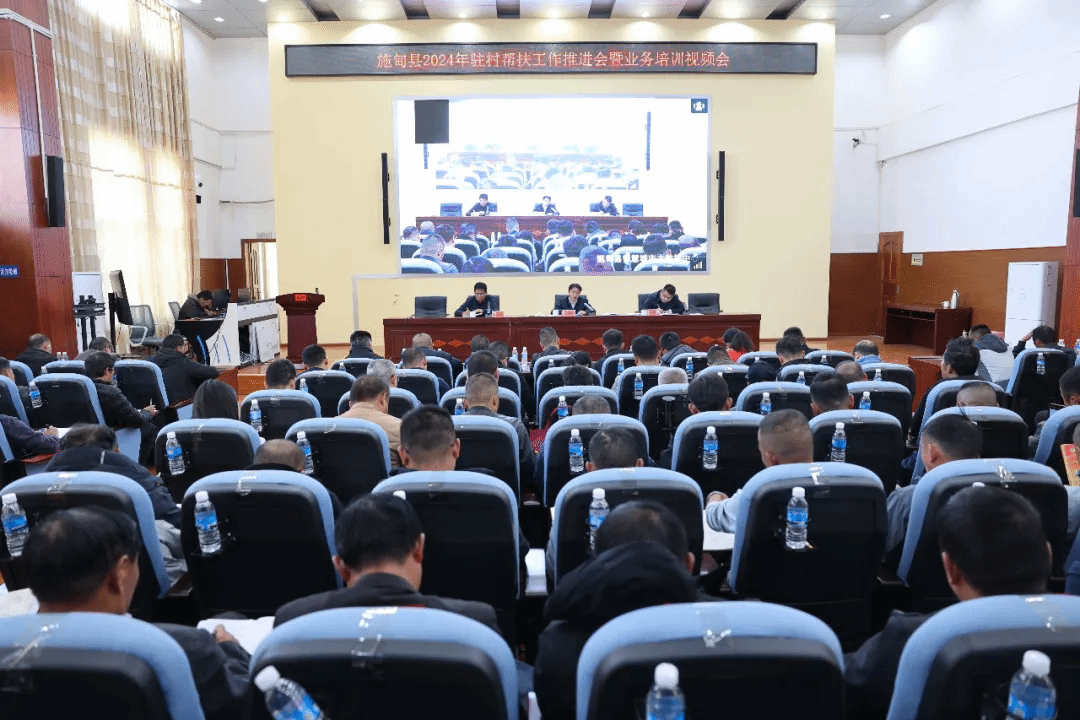 12月4日下午,施甸县2024年驻村帮扶工作推进会暨业务培训视频会议召开。县农业农村局一楼大数据指挥中心设主会场,派驻有驻村工作队的91个村(社区)视频会议室设分会场。县委书记周耀泉主持会议并作工作要求。