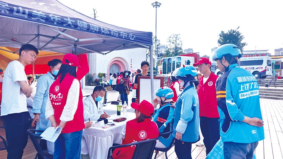 保山美年大健康体检中心、保山艾维眼科医院、保山龙马祥元中医院的志愿者针对新就业群体常见的健康问题,开展彩超、心脑血管检查等义诊与健康咨询服务。非公企业以实际行动发挥“新”力量,为新就业群体及群众的身体健康保驾护航。